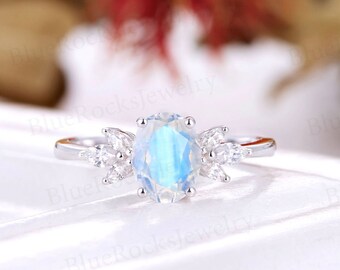 Vintage Moonstone Engagement Ring Art Deco Wedding Ring Oval Etsy